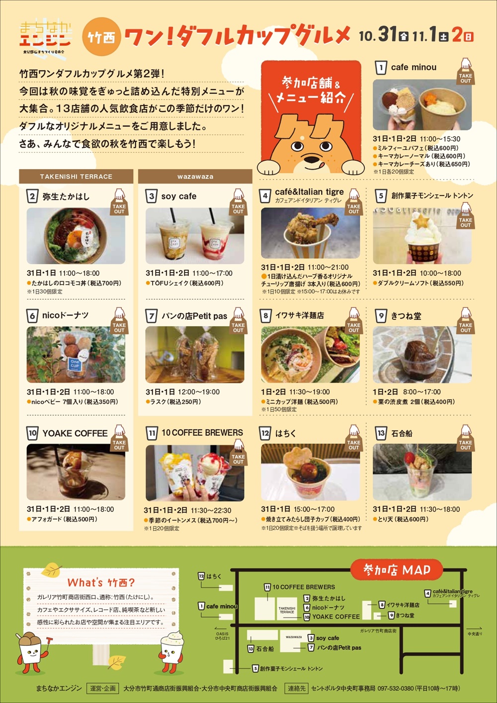 ガレリア竹町商店街西口界隈のお店にご協力いただき、ワン!ダフルカップグルメが開催されます!!