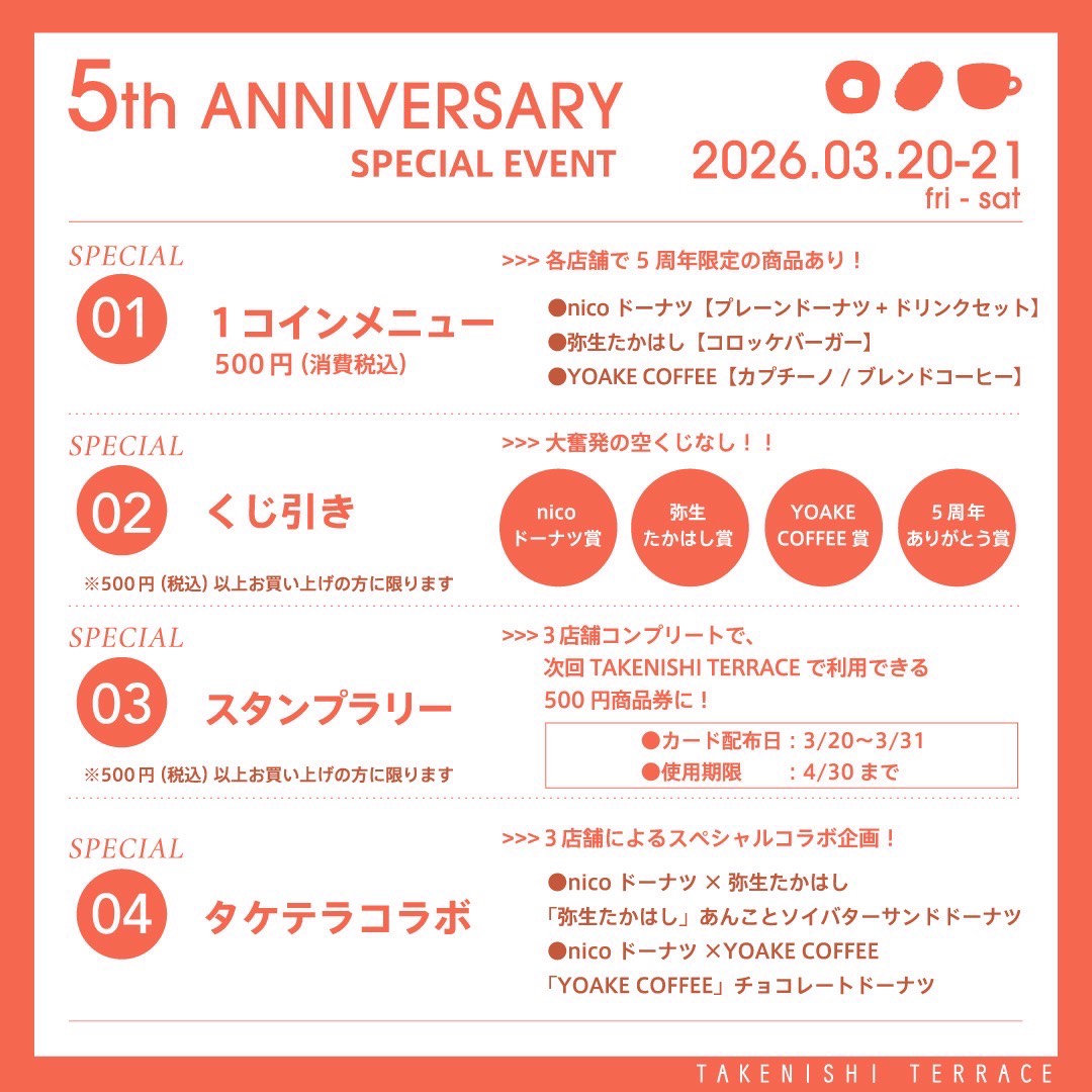 TOP 〉 シントチブログ 〉 TAKENISHI TERRACE5th ANNIVERSARY