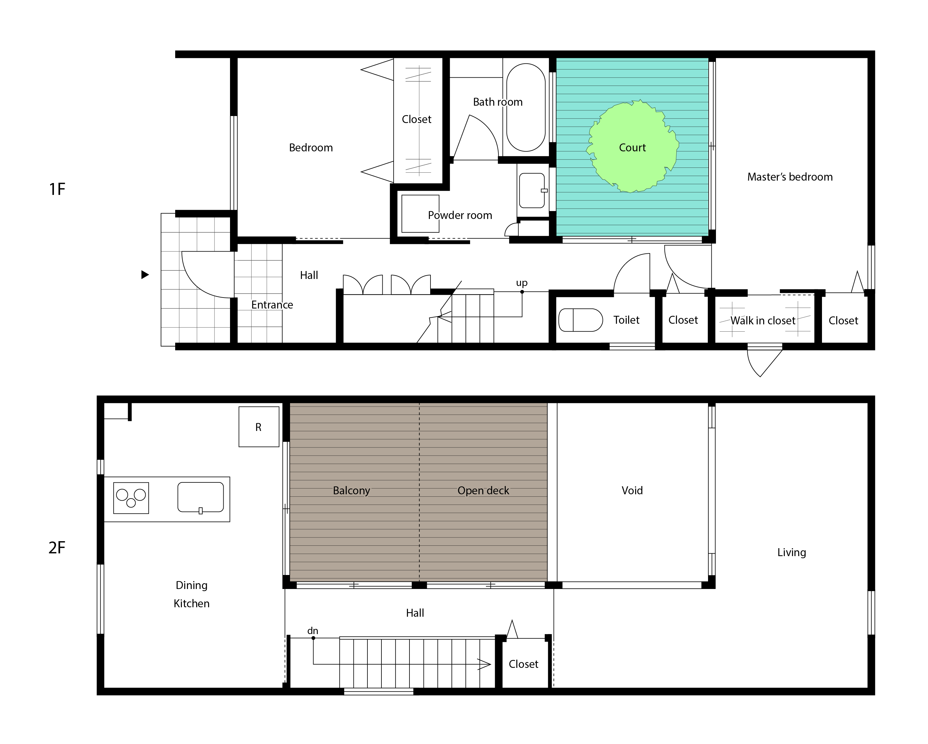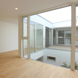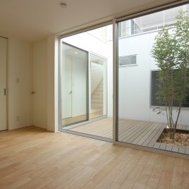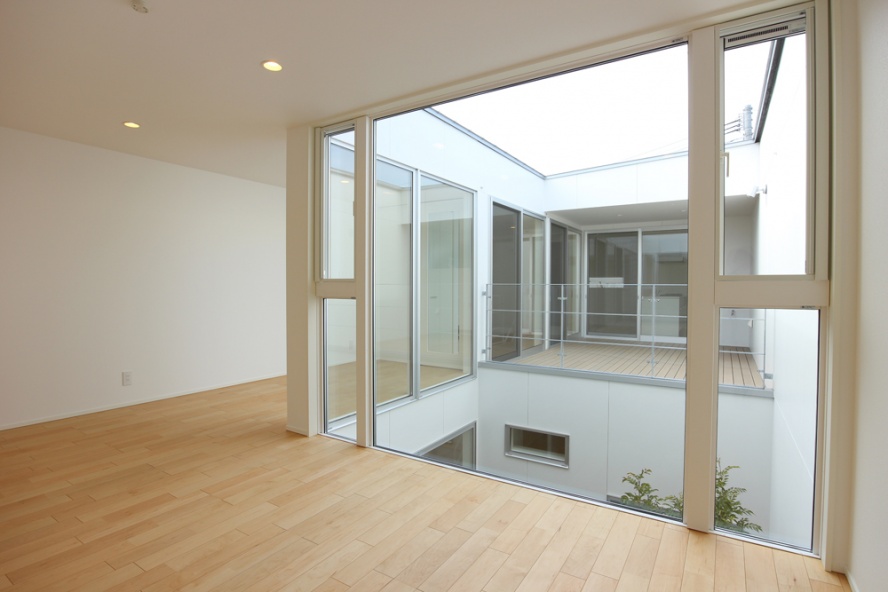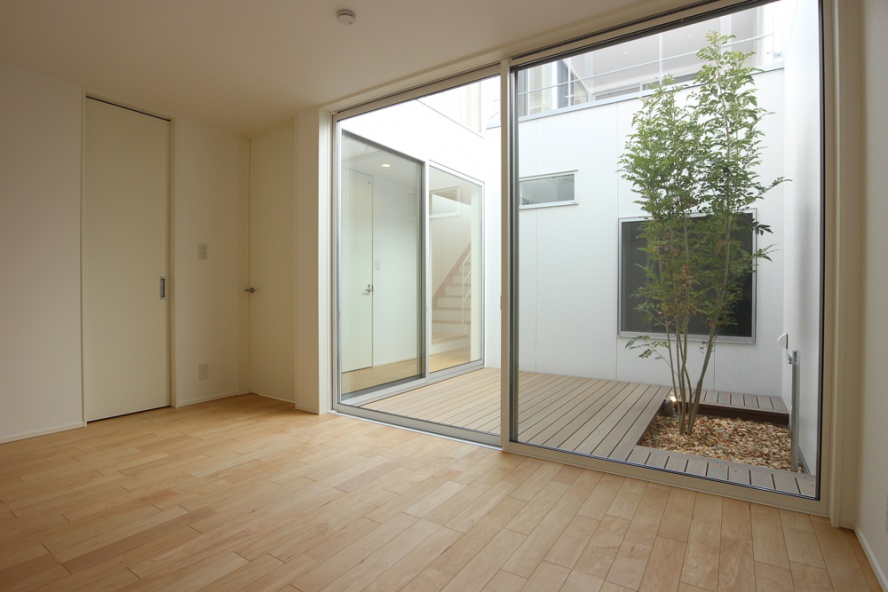 デッキのある中庭を中心に、家の中でたっぷりの光や風を感じながら暮らせるコート&デッキ。