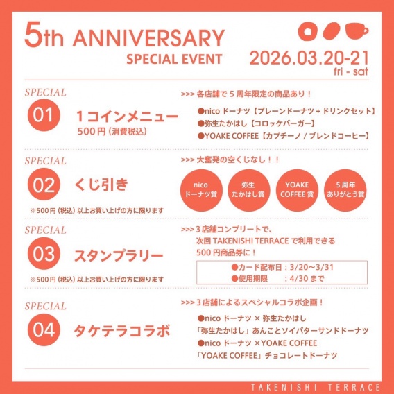 TOP 〉 シントチブログ 〉 TAKENISHI TERRACE5th ANNIVERSARY