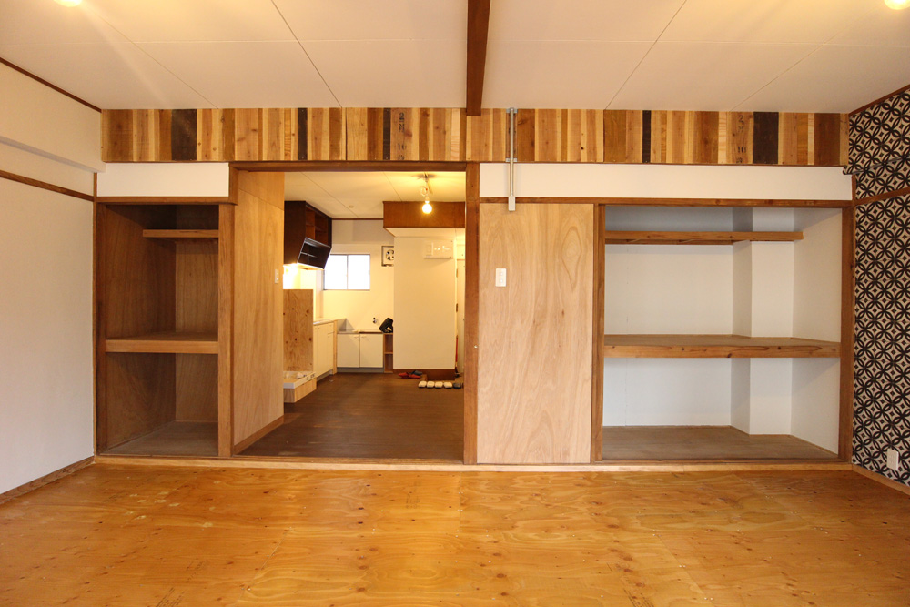▽▼第二弾:壁紙貼り&古材貼り▽▼